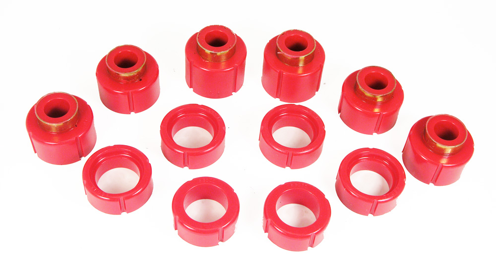 Original equipment rubber bushings deteriorate quickly and give less than ideal performance. Prothane # 7-112 polyurethane bushings are designed to last up to 3 times longer than standard rubber bushings and will typical improve handling and performance. Replace factory GMC Truck body mounts to restore ride height as well as gain durability! Stronger than original rubber mounts that are so soft they crack, distort, and crush so badly they often fall off.