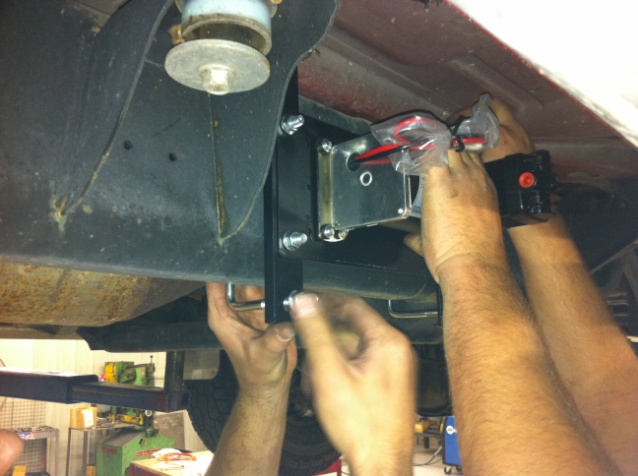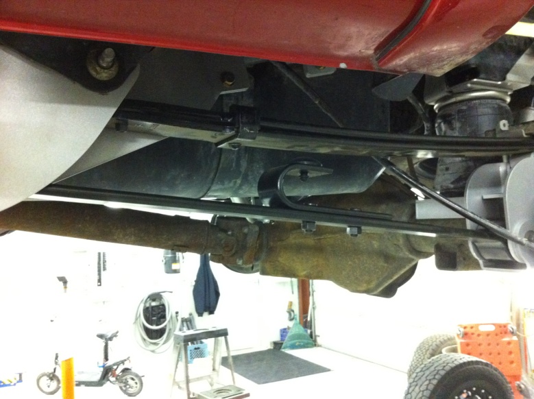 Installation of the air bags is next up on the plate This step is very similar to installing a regular set of air bags on this truck. It requires removal of the factory bump stops on the frame and a bracket on the axle for the air bag to mount to.