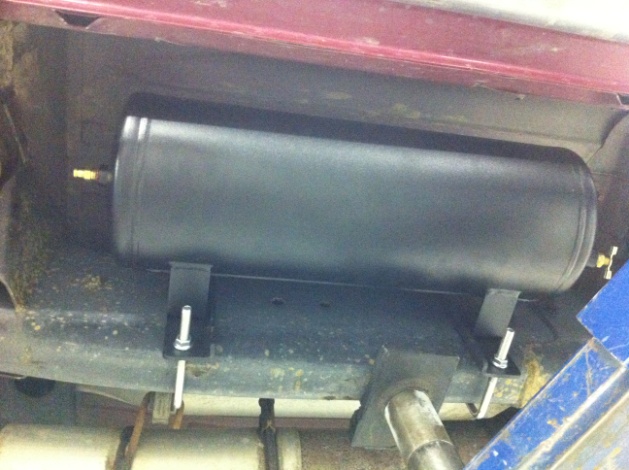 The kit comes with a tank for on demand air to access air instantly. This allows things like the knee function to work more rapidly. The knee function is a switch that dumps the air allowing the vehicle to drop up to 4 inches to drive under a hitch ball and then flip the switch airing the bags back up to regular ride height.
