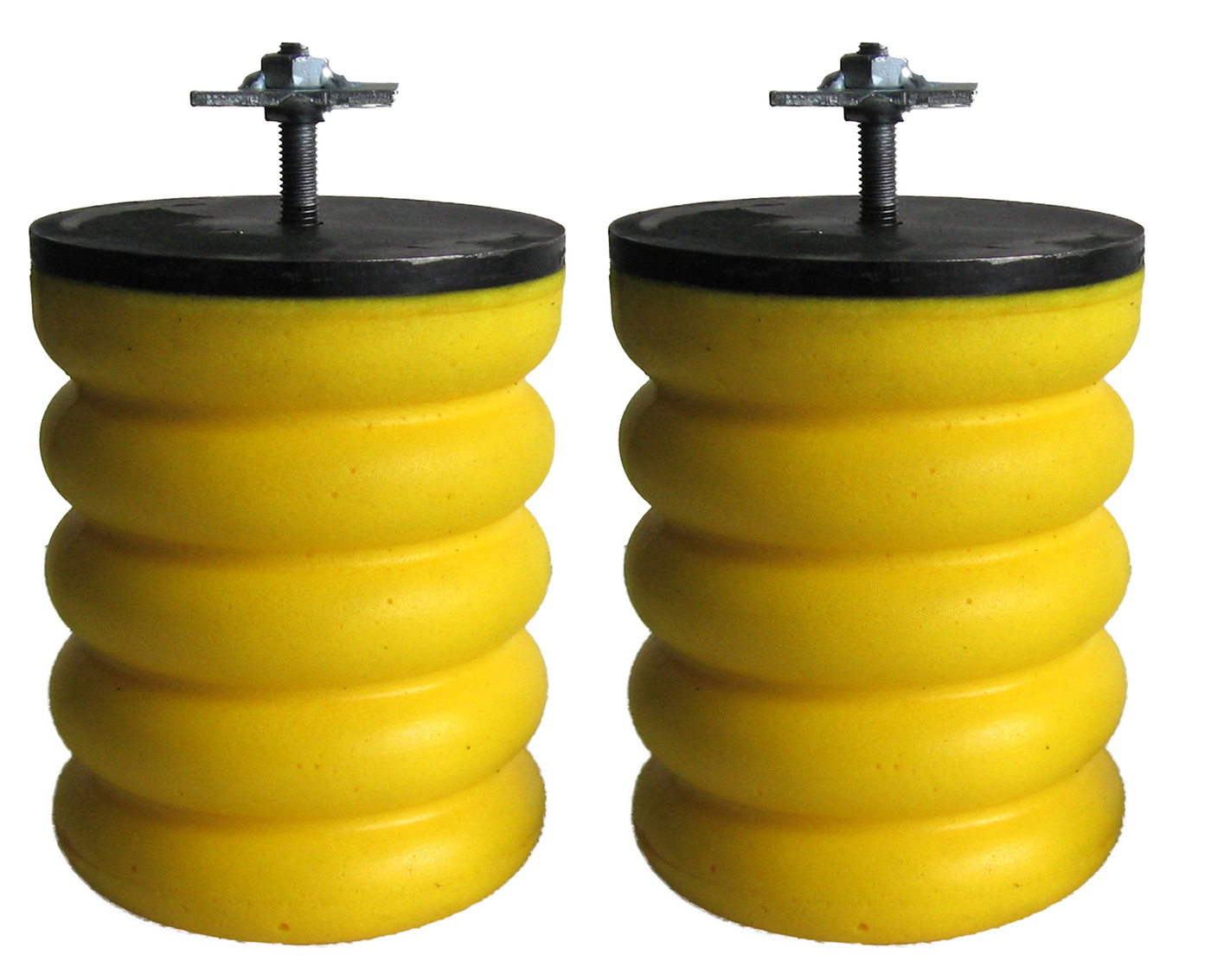 SumoSprings for the rear end are great if your vehicle is pulling a trailer or carrying a heavy load. They will stabilize your vehicle and help to keep it level. Made as rear alternative to traditional air bags by Air Lift and Firestone. These micro-cellular springs differ in that they require no inflation and will not leak or rupture. While not adjustable like air bag helper springs, Sumosprings will help to reduce sway and reduce sagging in the rear end. Just mount and forget. Included with all kits are steel mounting brackets and hardware. All are custom fit for a simple installation.